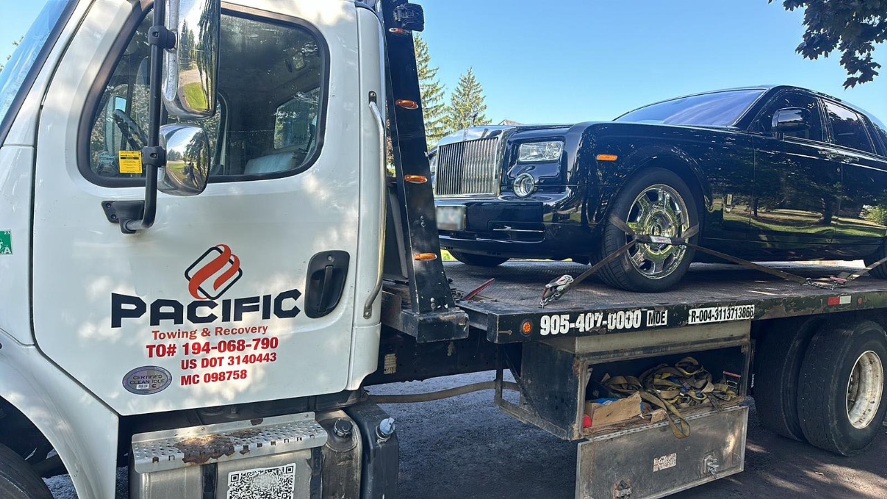 Precision and care are crucial when transferring high-end vehicles like the Rolls-Royce Phantom, as seen in the picture. We at Pacific Towing handle these expensive cars with the most care. Automobiles such as Lamborghini, Rolls-Royce, and other high-end models are kept in perfect condition throughout transportation by using our specialist flatbed towing service, which guarantees safe transportation without any mileage buildup or exposure to the road.